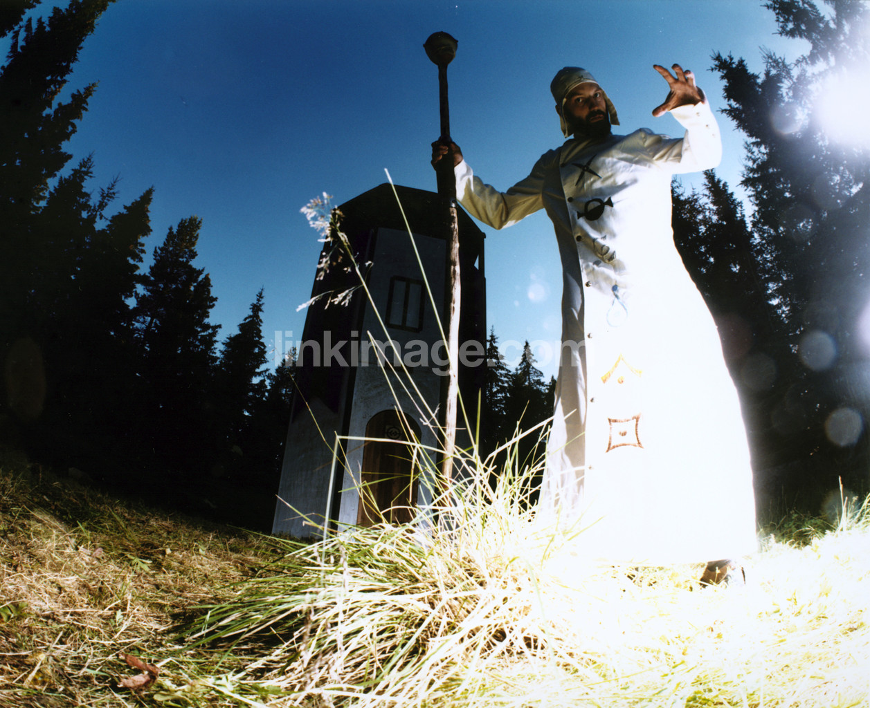 - male, out, mystery, religion, rod, ceremony, silhouette, evening, priest, plants, grass, tree