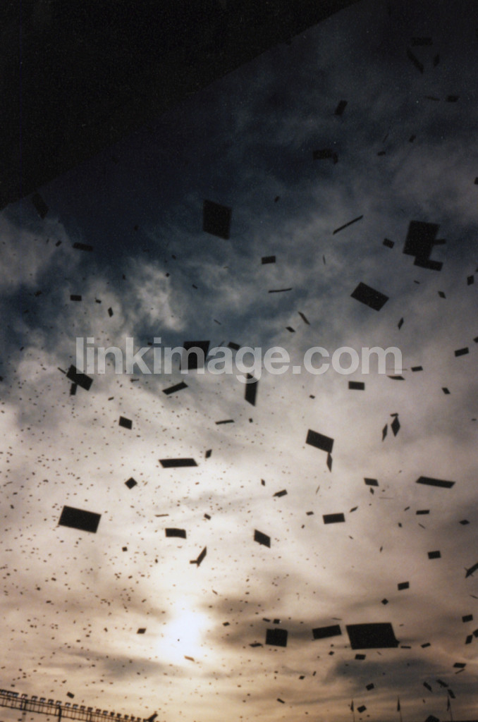flight, sky, cloud, squares, debris, garbage, flies, about, in, air, wind, blowing, blown, overcast, sunshine
