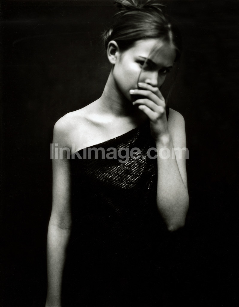 - an, girl, female, hand, dark, ranking, hair, portrait, dress, hold, for, mouth