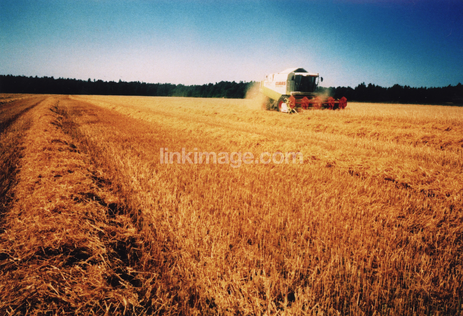 reaping, machine, yellow, harvest, go, sky, backhoe, agricultural, work, field, spot, reaper