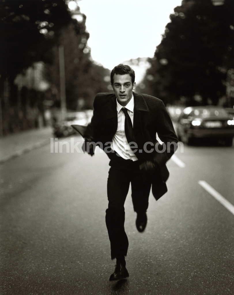 - male, run, street, cars, kostum, shirt, tie, gloves