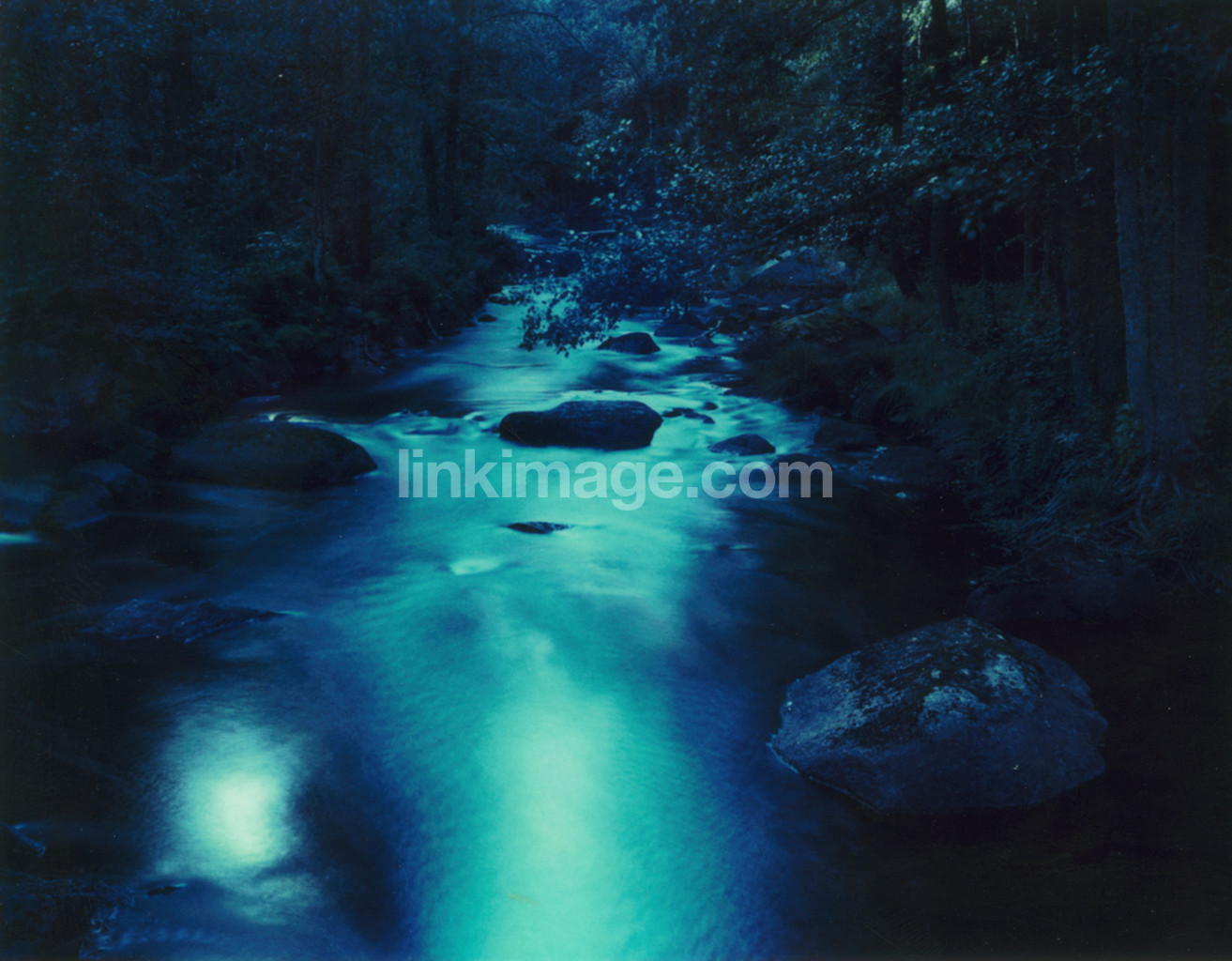 night, magic, light, forest, river, stream, on, flows, flowing, forward, by, stones