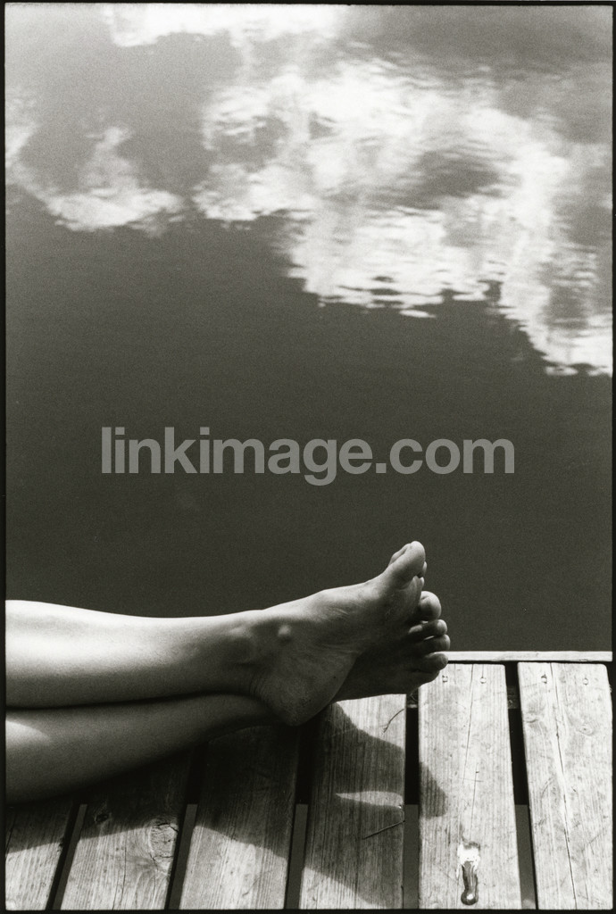 - bone, foot, feet, pier, bridge, water, lake, sky, shadow, summer, tear, rest, sunbathing, reflection, cloud