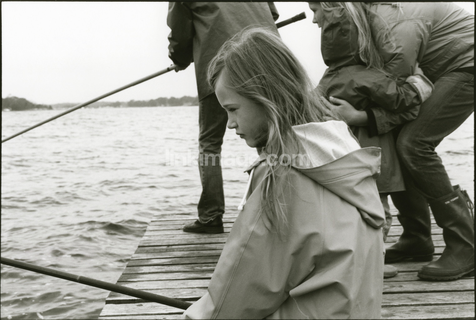 fishing, pier, bridge, girl, children, people, water, lake, mother, fishing rod, family