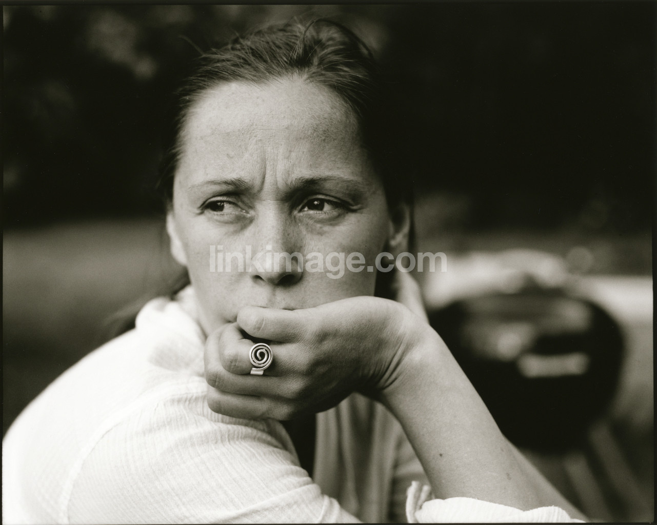 - female, portrait, face, hand, cover, for, ring, eyes, tension