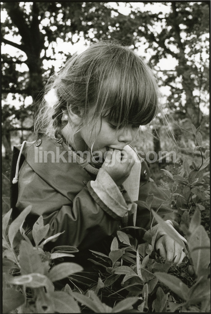 girl, children, blueberries, forest, berry, eat, pick, look, plants, leaf, braid