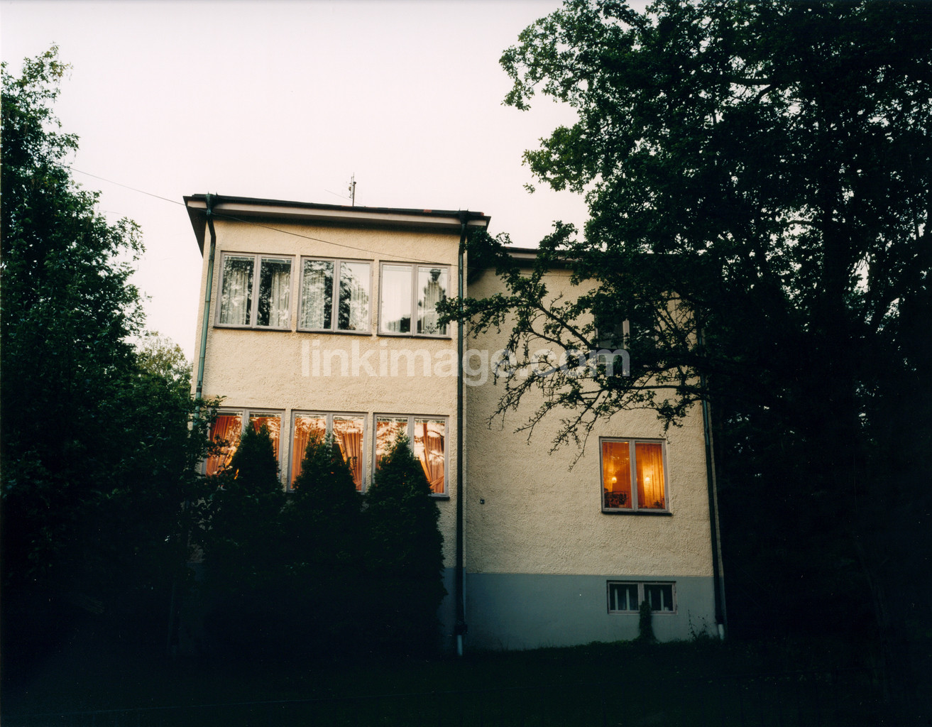 - house, home, villa, night, evening, dusk, window, light, tree, garden