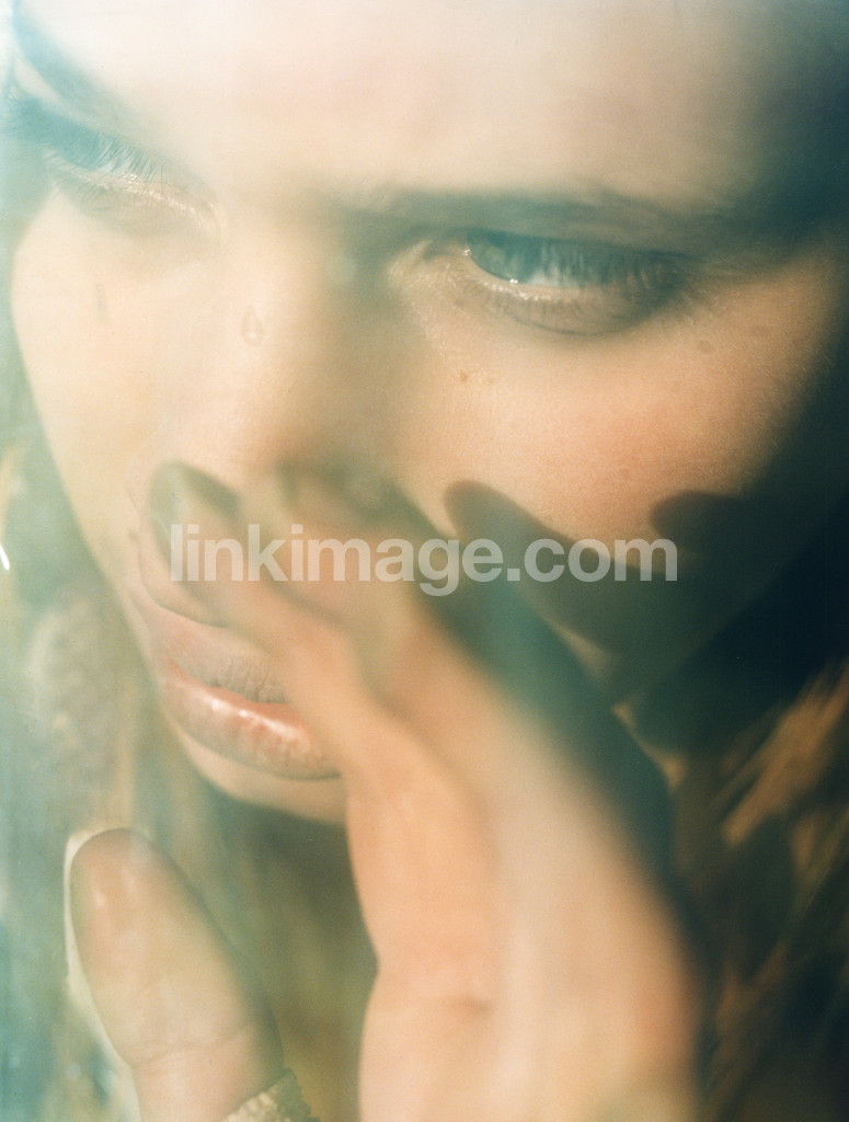 female, portrait, face, hand, light, eyes, shadow, gaze, obscures, hides, concealment