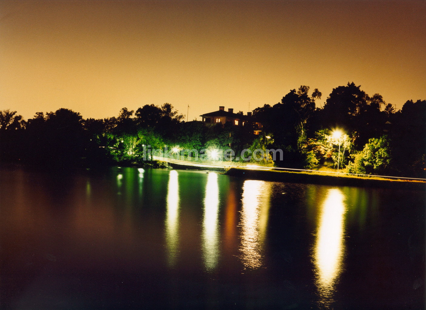 - yellow, sky, water, lake, house, silhouette, street, light, road, dusk, shiny, relex, night, reflection