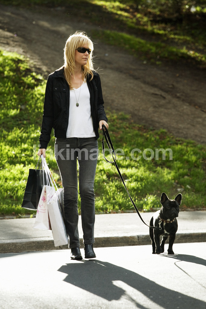 dog, street, is, city, stockholm, female, lifestyle, sun, sunglasses, walk, leash