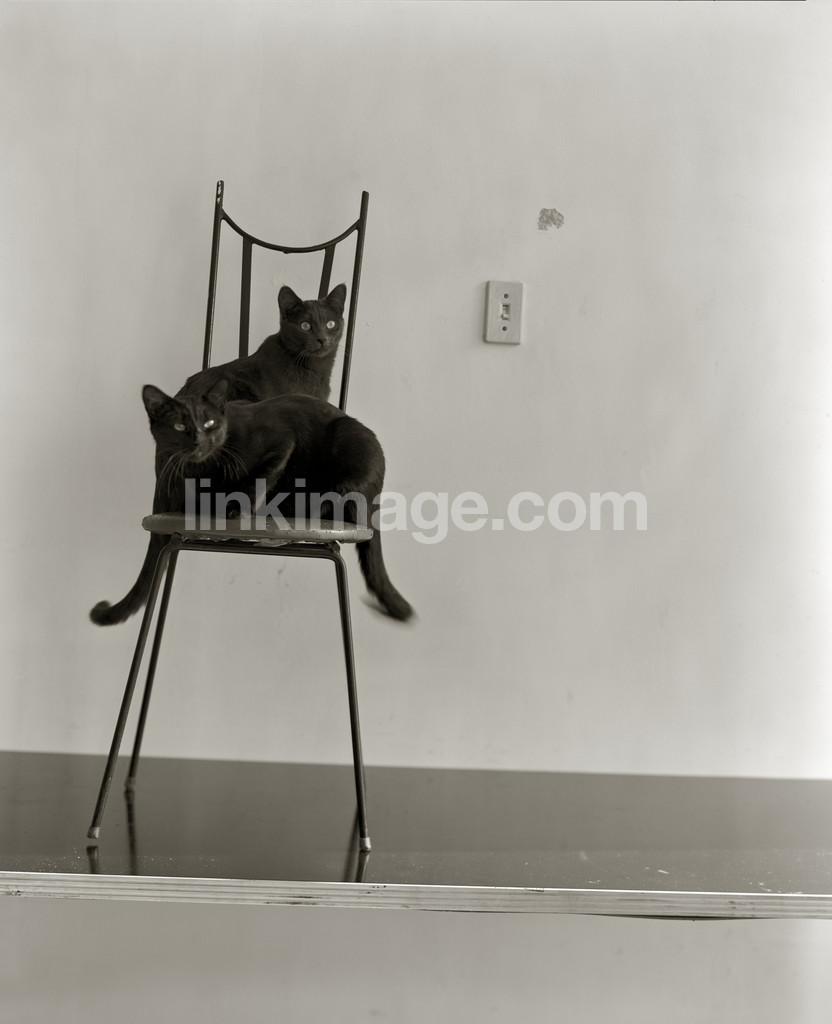 cat, black, chair, white wall, two, cats, switch, button, sitting, resting, bk120