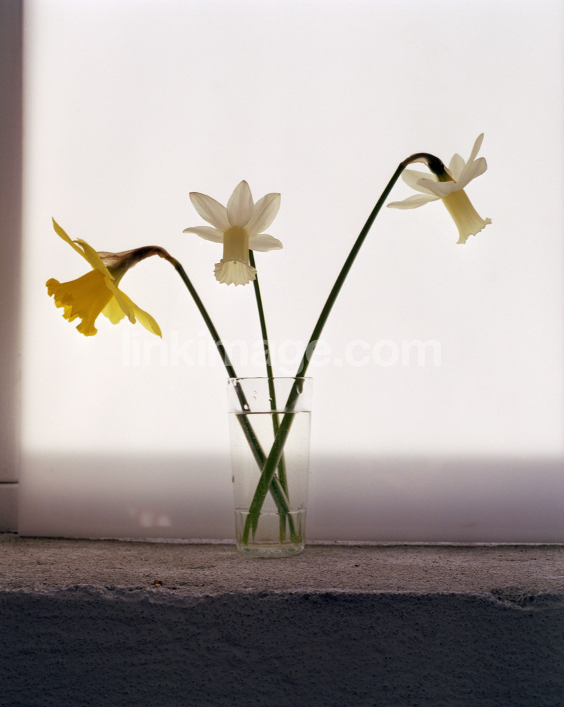 flower, daffodil, window, glass, spring, flowers, water, liquid, stalk, stems, three, bk1245