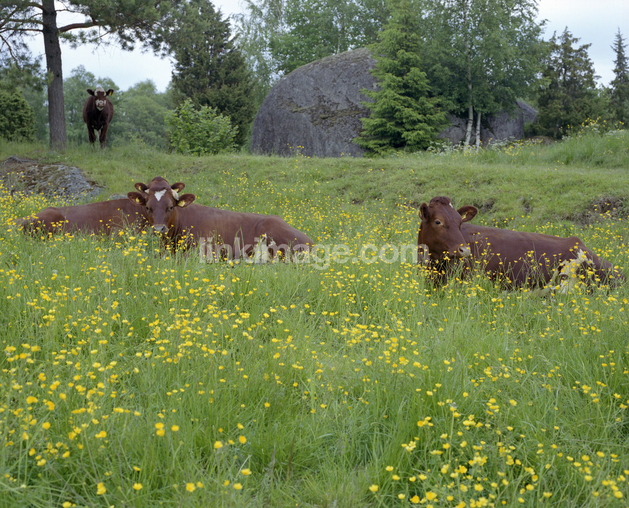 cow, grass, summer, meadow, buttercup, tree, beta, bait, lie, resting, rest, pasture, cow pasture, bk1295