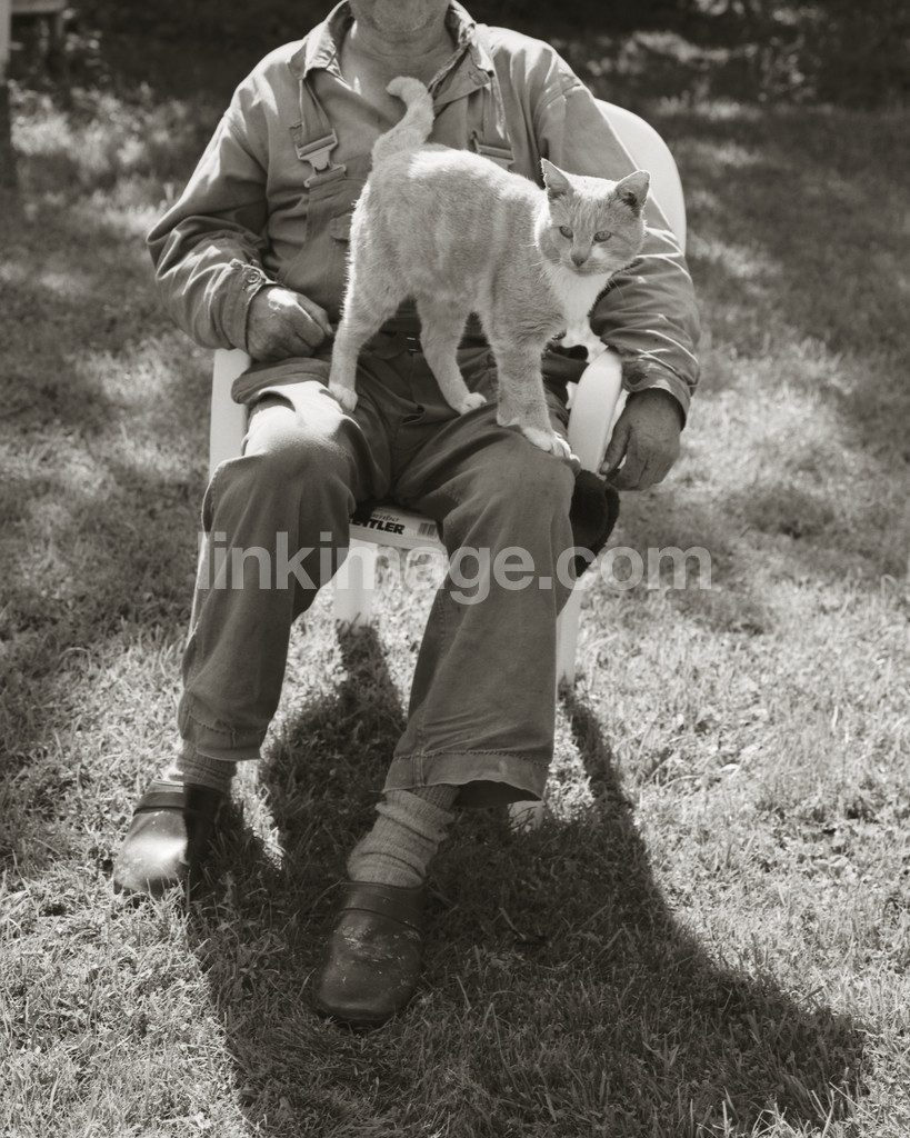 male, cat, summer, hot, grass, is, on, knees, sitting, in, chair, resting, bk1344