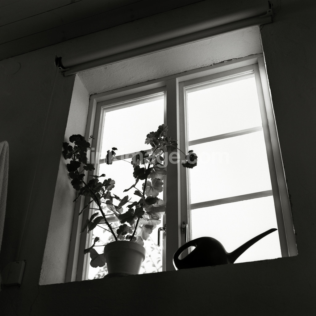 - window, plant, jug, see, glass, flower, geranium, backlight, watering can, windowsill, bk1409