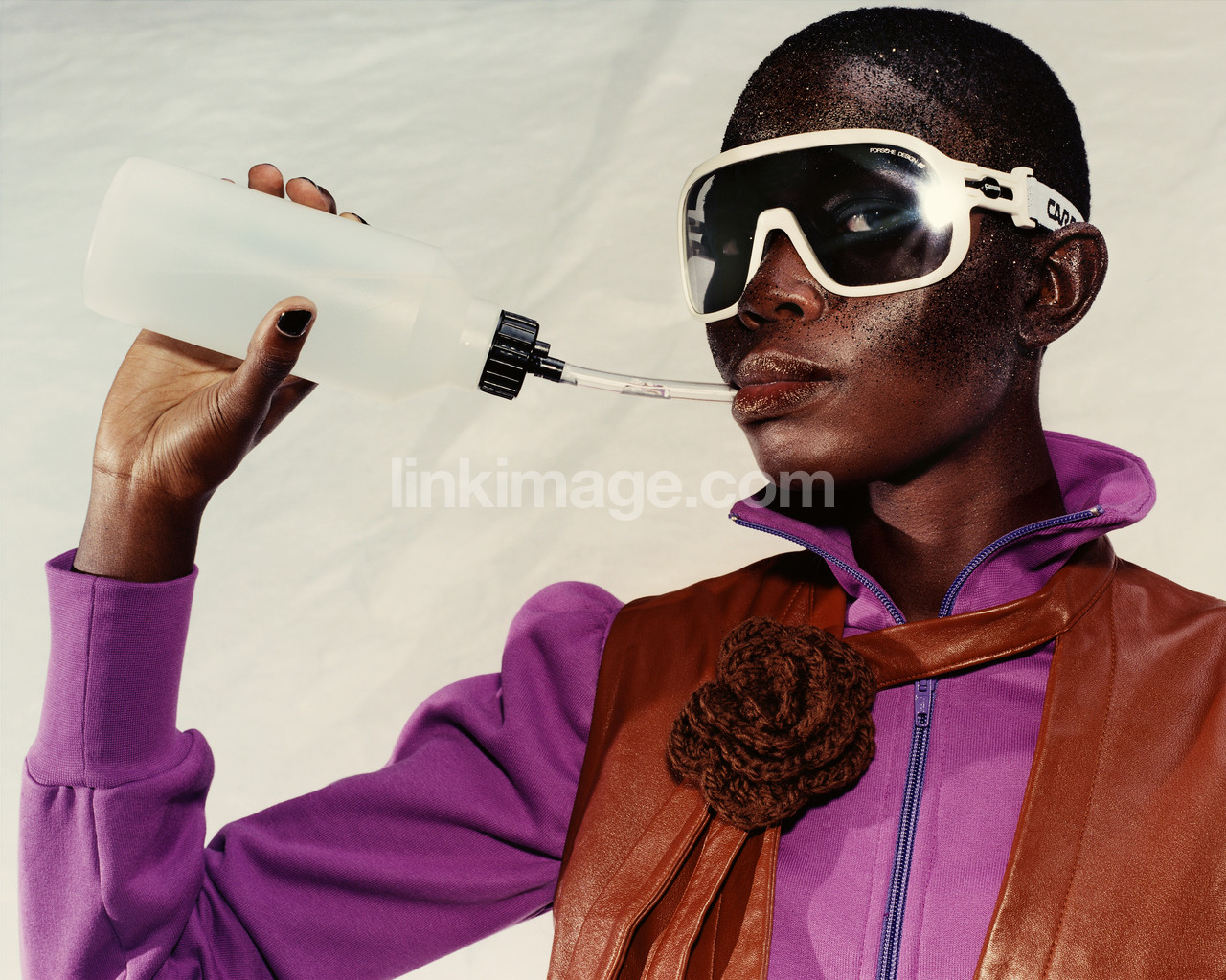 - female, sports, drinking, sun, eyeglasses, water, black