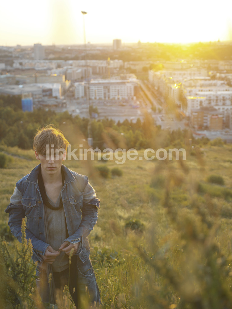 - male, boy, summer, grass, city, stockholm, sweden, sun, light, sundown, jhb039