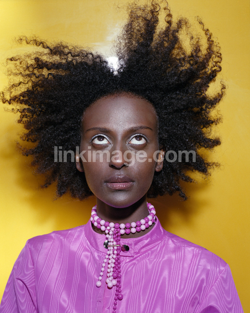 - female, hair, pink, jacket, necklace, yellow, jhb135