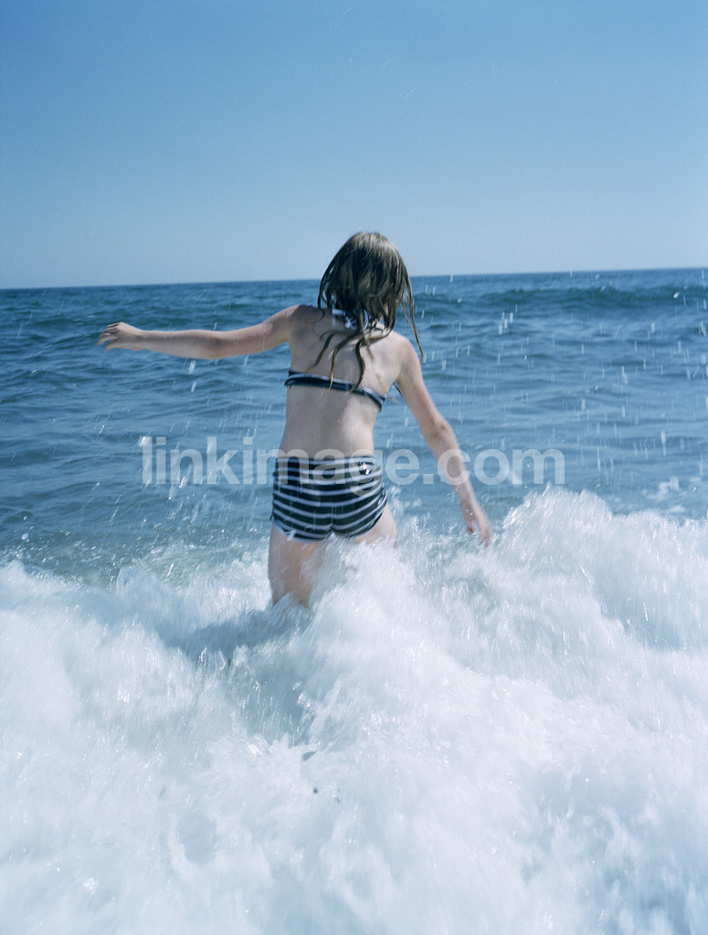 girl, children, water, sea, wave, swim, summer, hot, sky, horizon, bikini, holiday, leave, er049