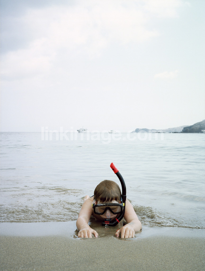 - summer, shore, sand, holiday, leave, water, boy, girl, pop, snorkel, er118, swim, horizon