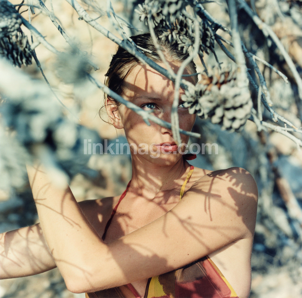 - female, arm, eye, shadows, branch, portrait, nature, branches, ps020, gaze, cone