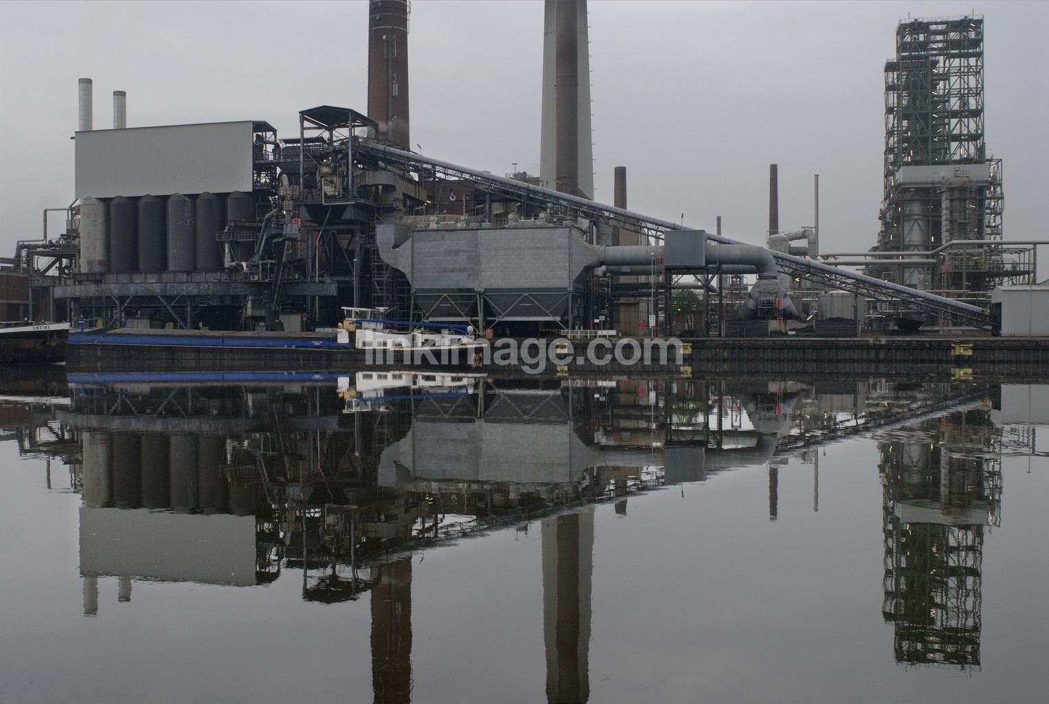 - port, water, stack, barge, reflection, industrial, exterior, environment