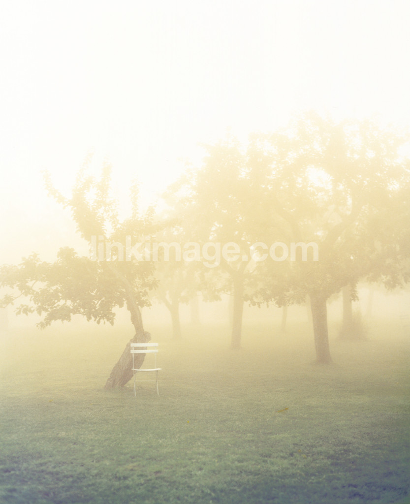 nature, garden, gardening, park, tree, fruits, fog, obscured, dg138, haze, branches, chair