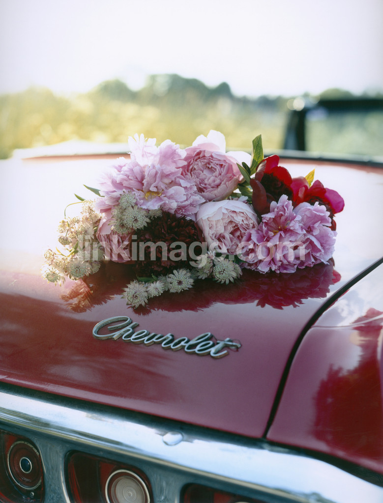 car, red, summer, freedom, flower, flowers, bouquet, classic car, convertible, holiday, rose, love, chevrolet, americans, dg222