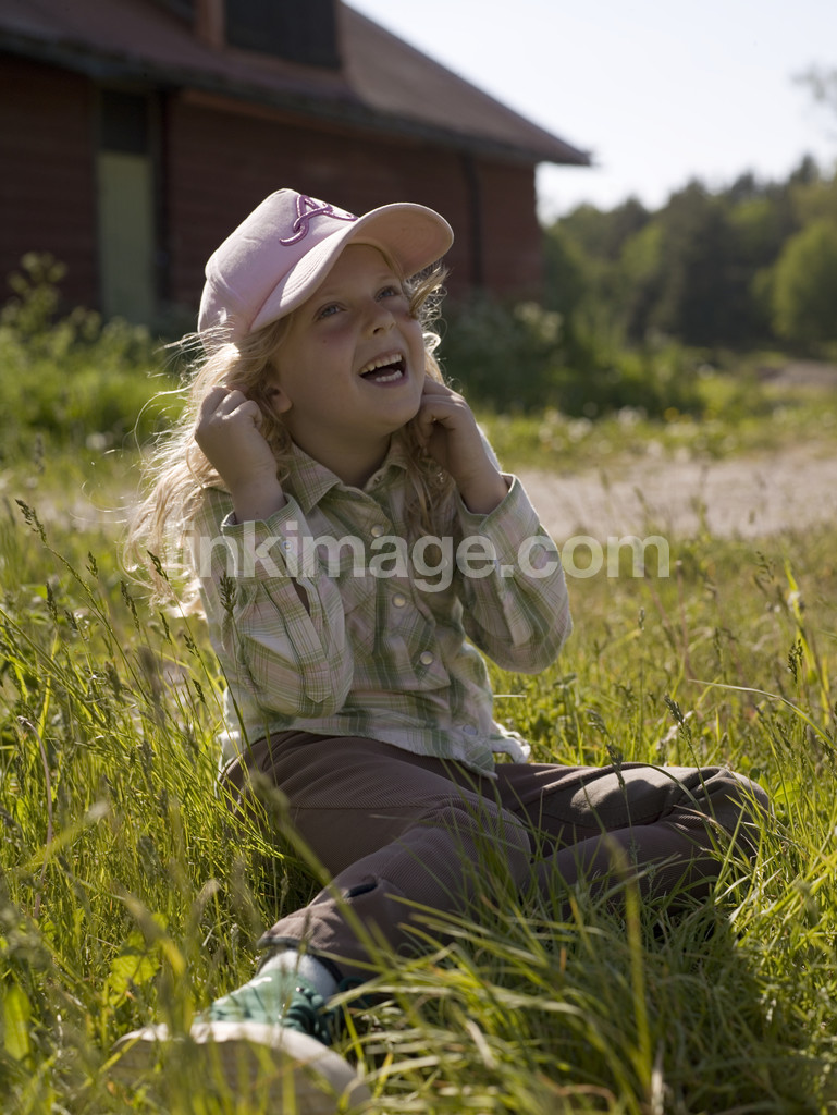 happy, girl, hold, for, ears, laughter, summer, country, stalls