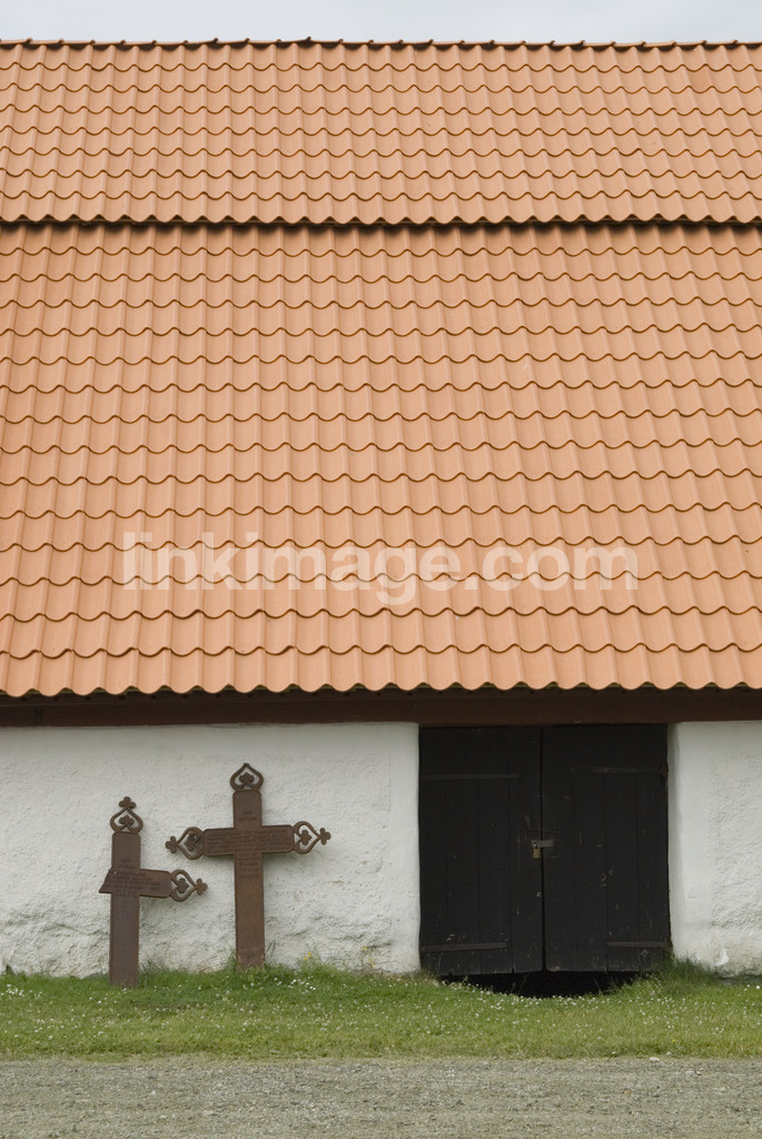 - tile roof, cross, cemetery, rural, outbuildings