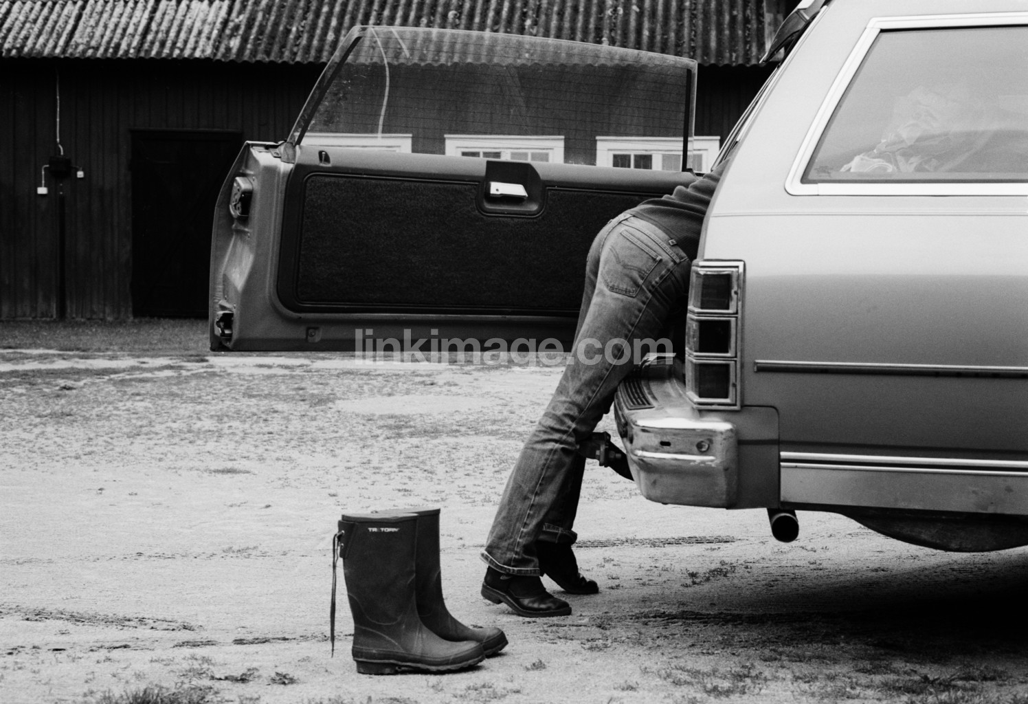 - car, female, loading, boots, yard, wellies