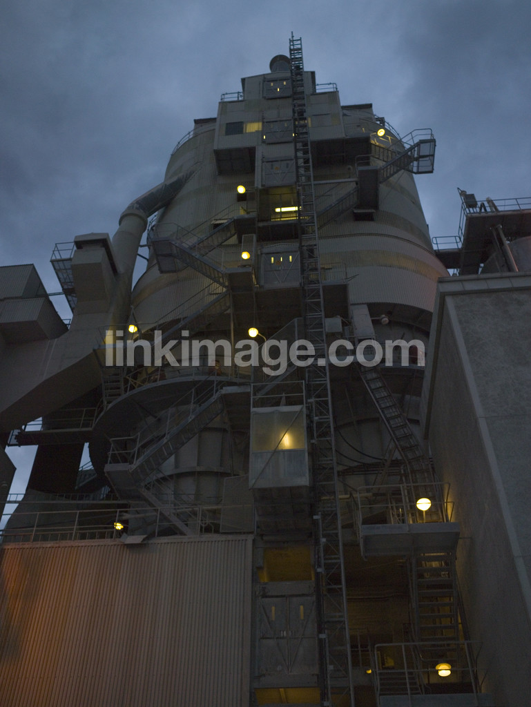 - factory, night, exterior, industrial