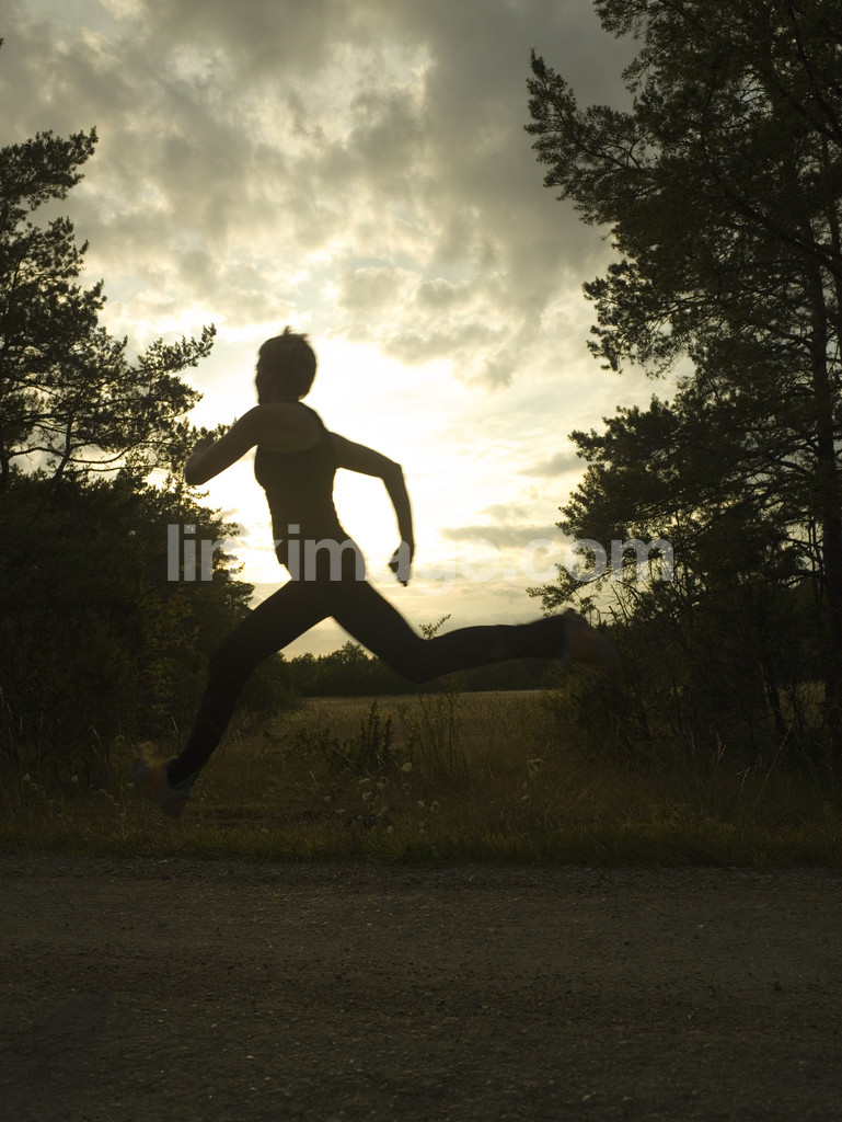 female, run, running, train, jog, force, elasticity, summer, sunset, gravel road, meadow, forest
