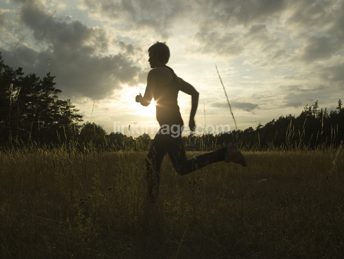female, train, sunset, sky, summer, run, meadow, backlight, correctly