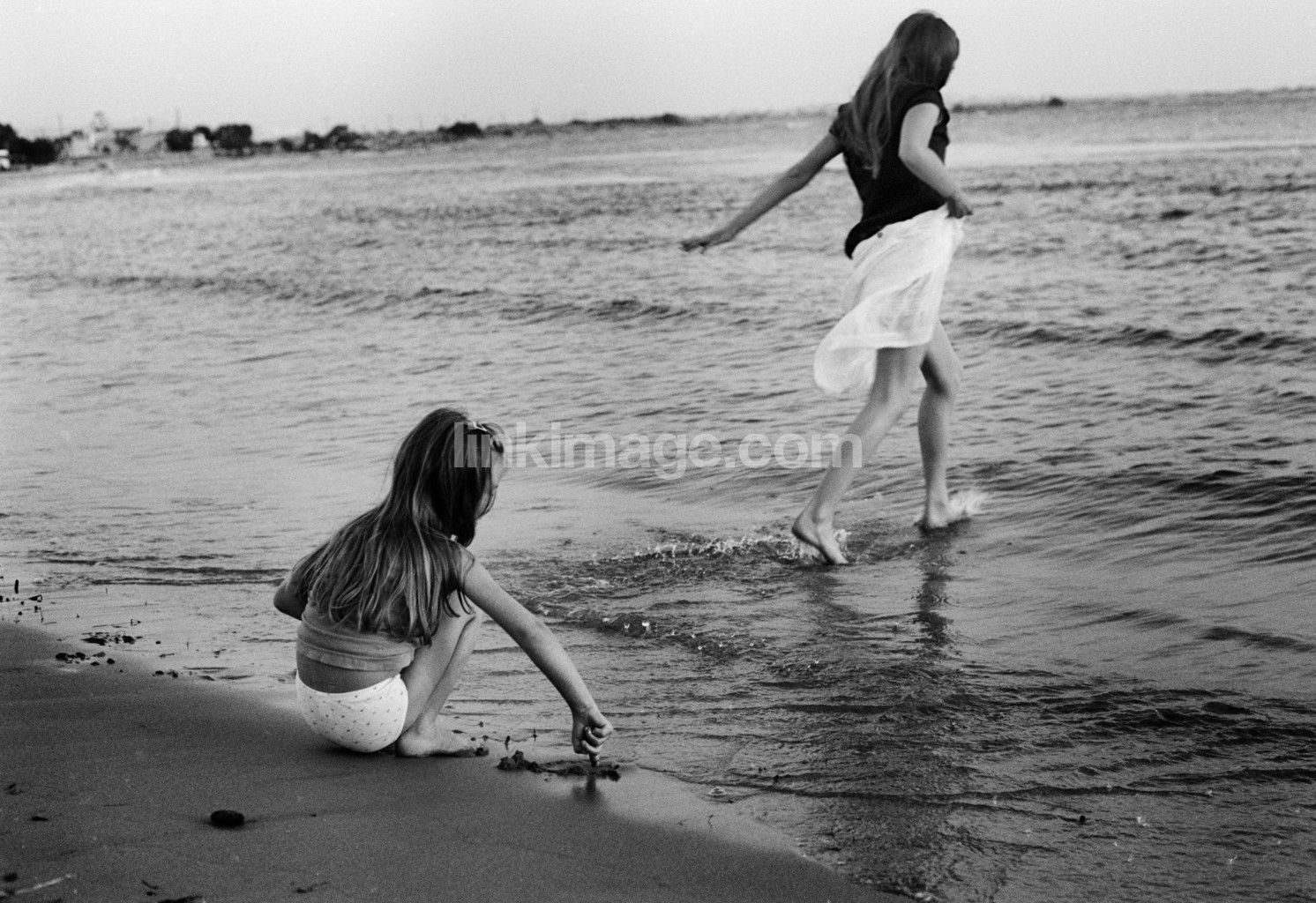 female, girl, swim, summer, water, sea, lake, play, family, siblings, sisters, horizon, sand, shore