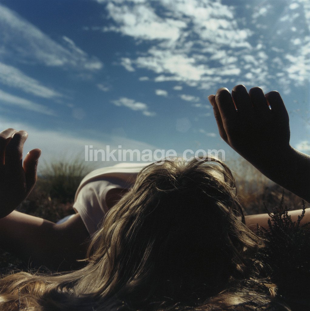 girl, is, sky, cloud, hands, hair, aw054, hairstyle, female