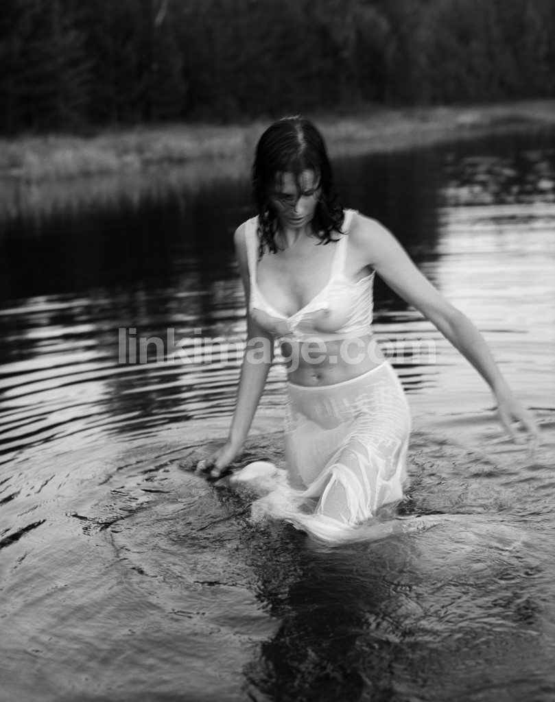 - female, swim, summer, lake, water, river, dress, wade