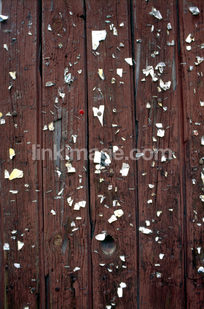 - red, paper, wood, wall, bulletin board, empty, destroyed, information, plank, poster, placarding