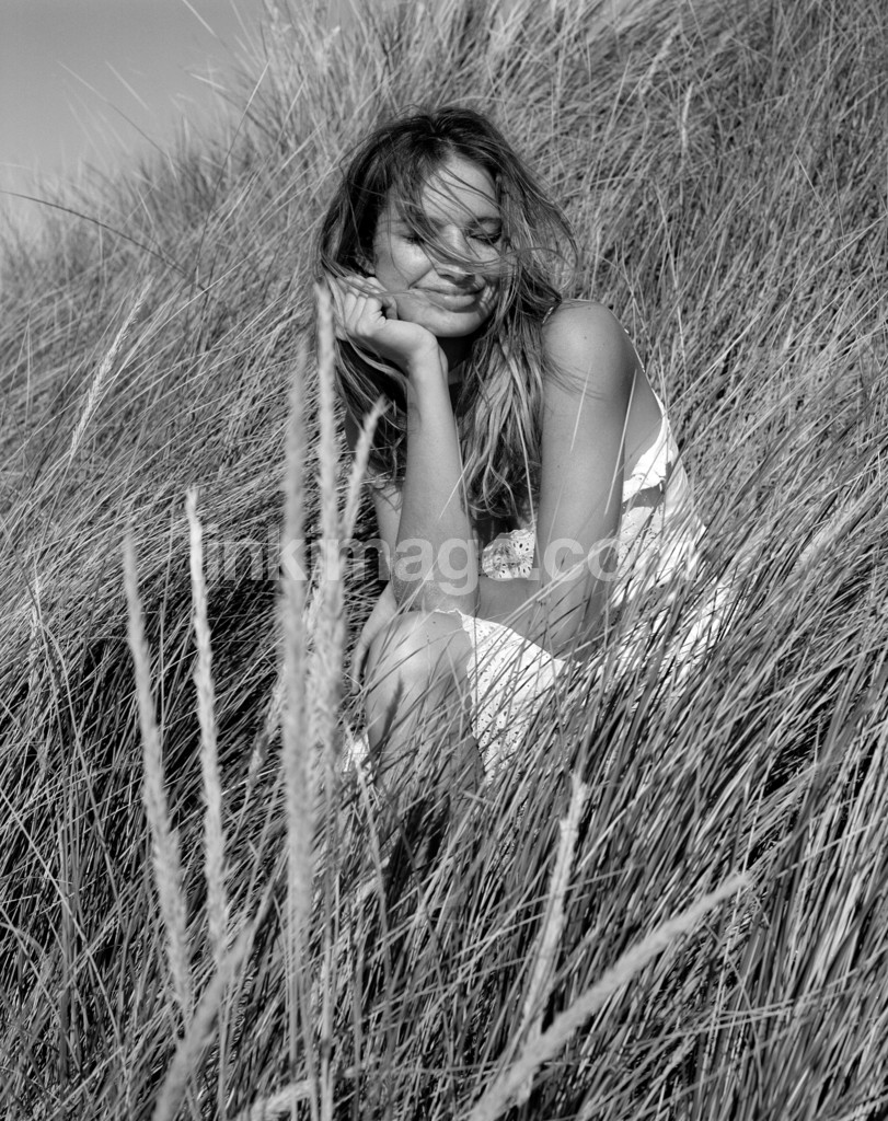 - female, girl, summer, happy, satisfied, grass, portrait, sitting, pose, hand, blowing, wind