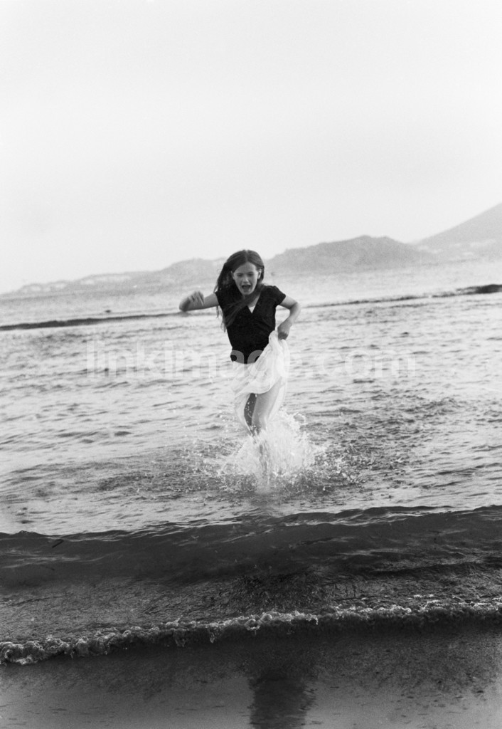 girl, water, swim, play, summer, lake, sea, holiday, run, wade, waves, sky