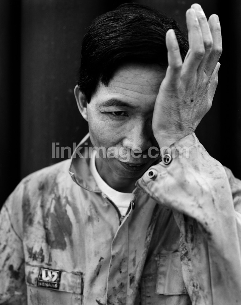 - male, worker, portrait, eye, dirty, tired, itch, hand