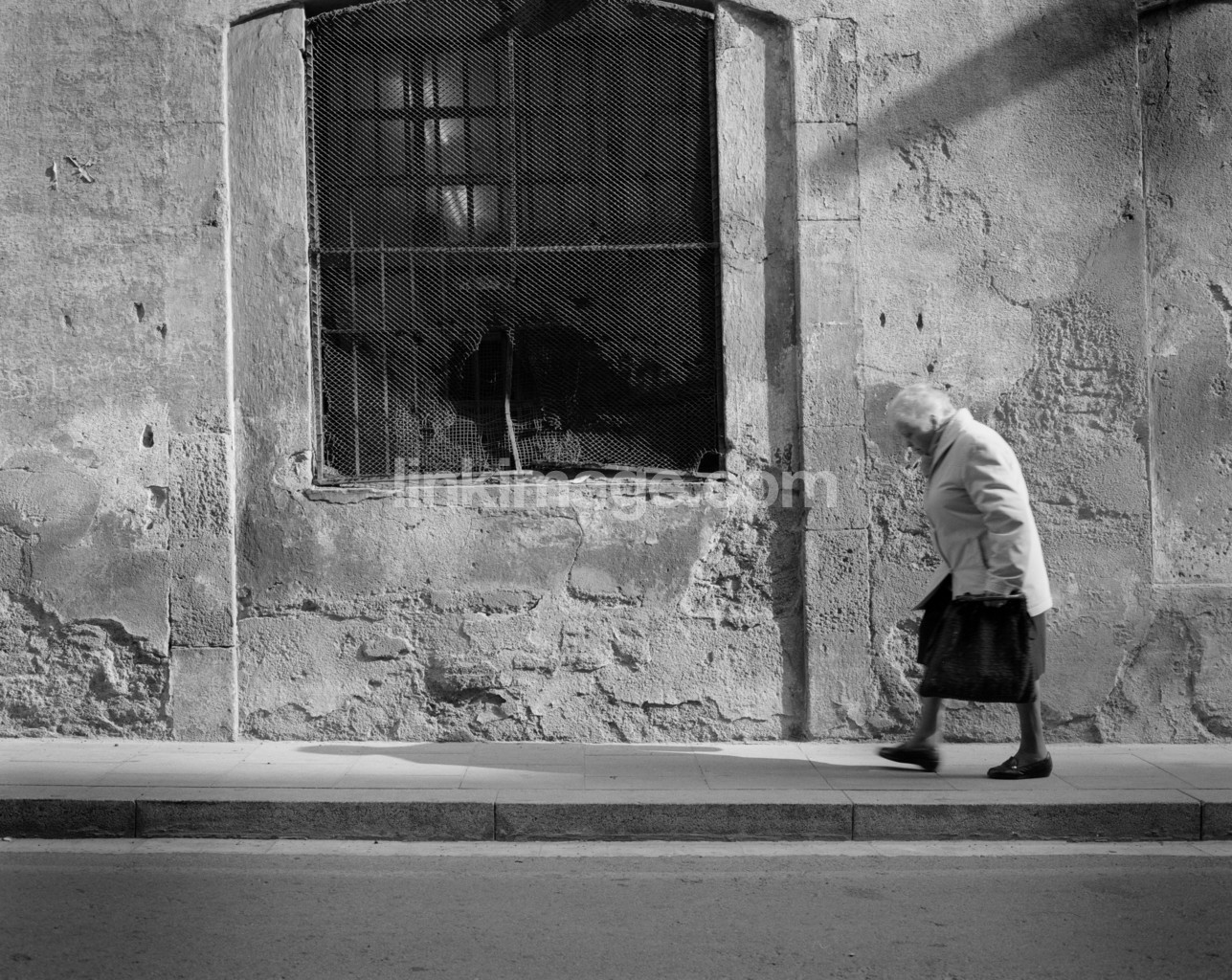 - lady, walk, aunt, housing wall, wall, façade, window, shadow
