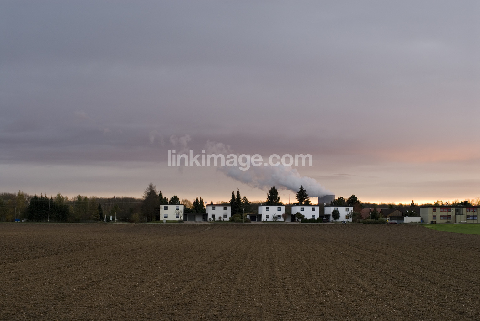 - architecture, cooling tower, dusk, by, evening, smoke, sky