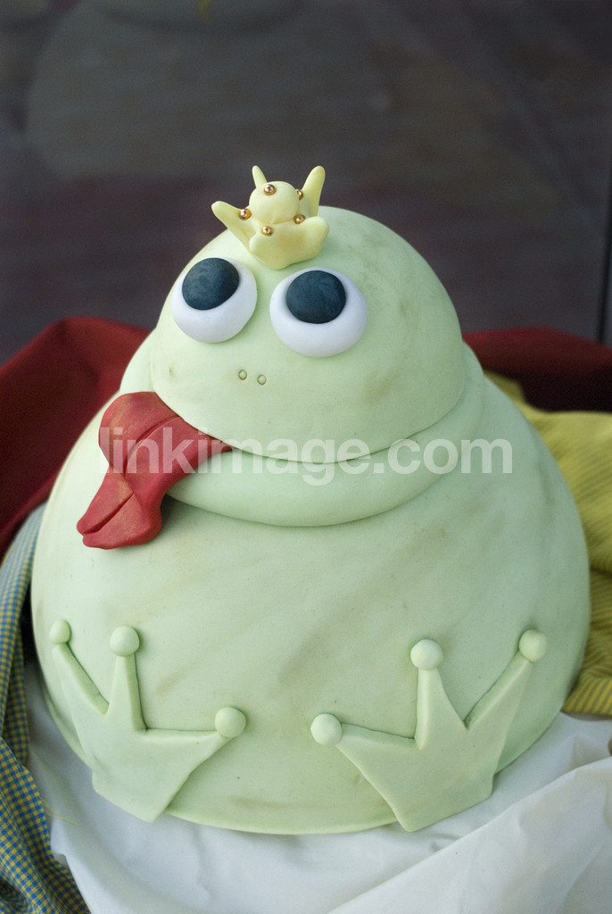 pastry, green, crown, tongue, frog, cake