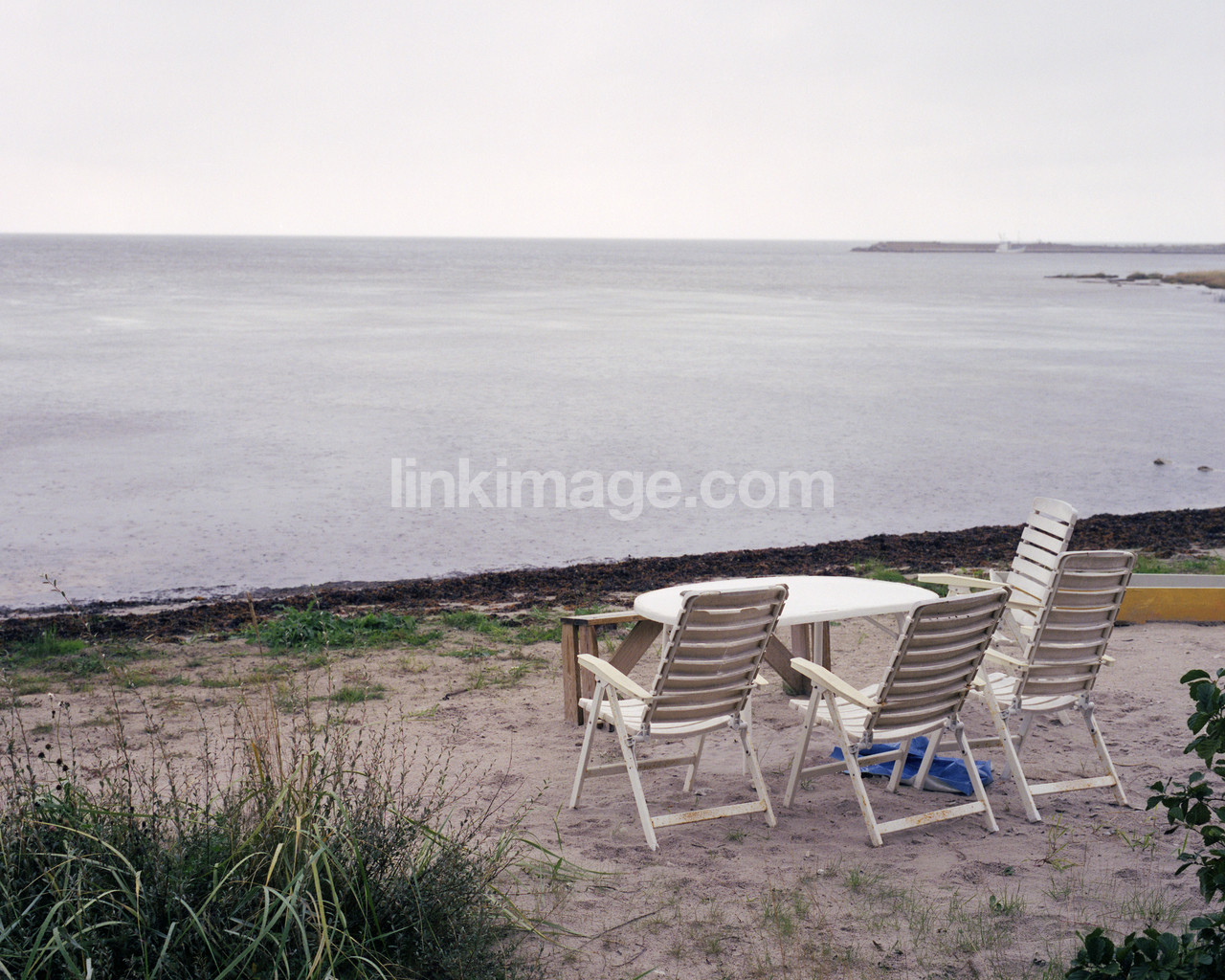 sea, sand, sunbeds, table, plastic, drizzle, weather, storm, water, horizon, sky