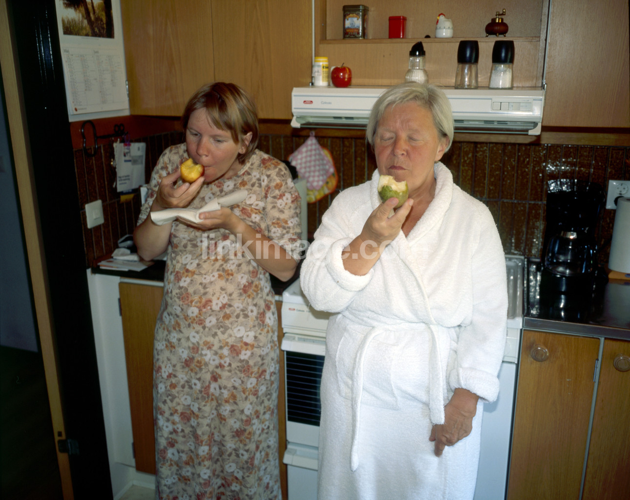 - mother, daughter, fruits, kitchen, nightdress, bathrobe, home, family, breakfast, generations, healthy
