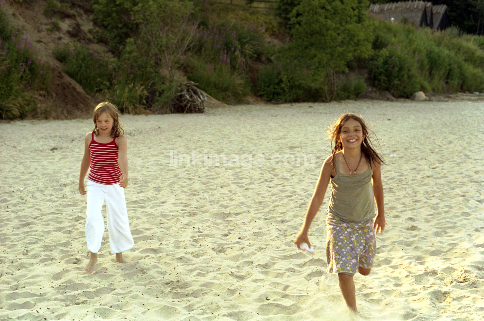 - Two girls running on a beach