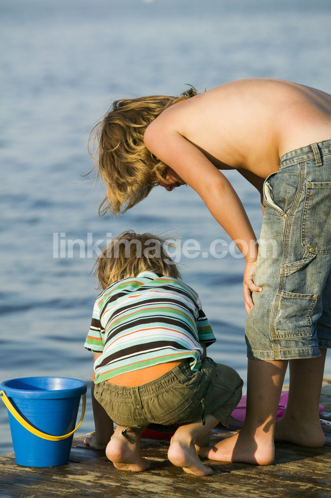 siblings, boys, brothers, watch, capture, summer, catch, water, sun, play, examine, bridge