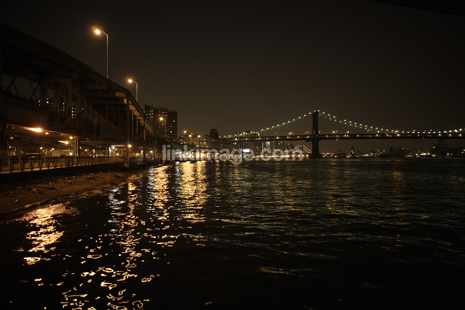 - manhattan bridge, night, bridge, water, light, city, sl2456