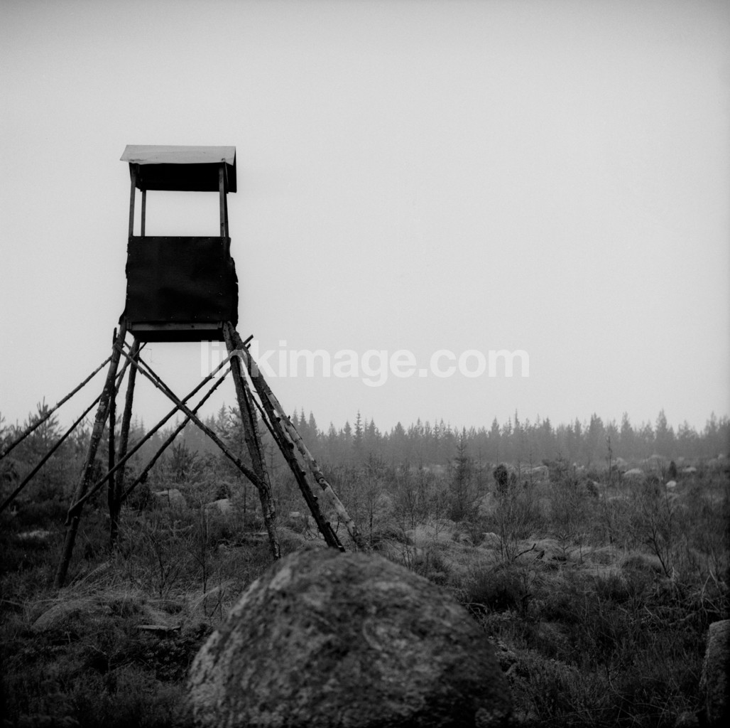 strains, tree, dark, nature, hunting tower, fog, hunting, tower, views, forest, plants
